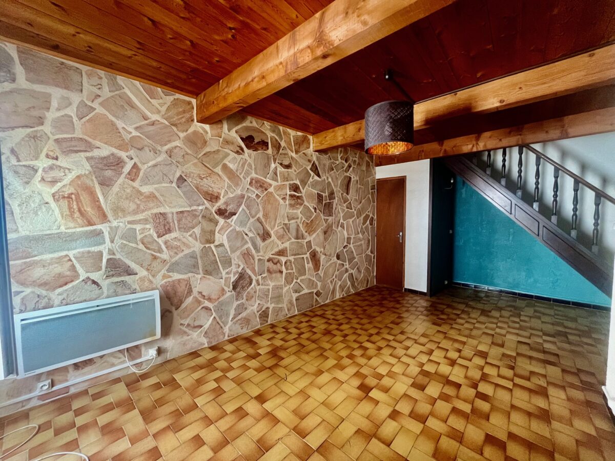 -Au 1er niveau surélevé: hall d’entrée, une chambre, cuisine, salon, salle à manger, sdb, wc,