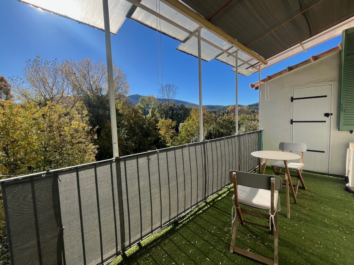 Au 1er étage, un appartement T3 climatisé avec terrasse de 14m² : hall d’entrée, cuisine aménagée, salon-salle à manger, 2 chambres, sde et WC.