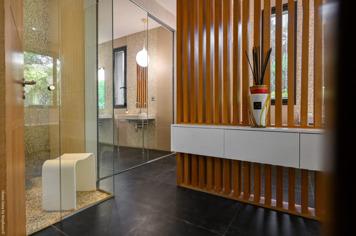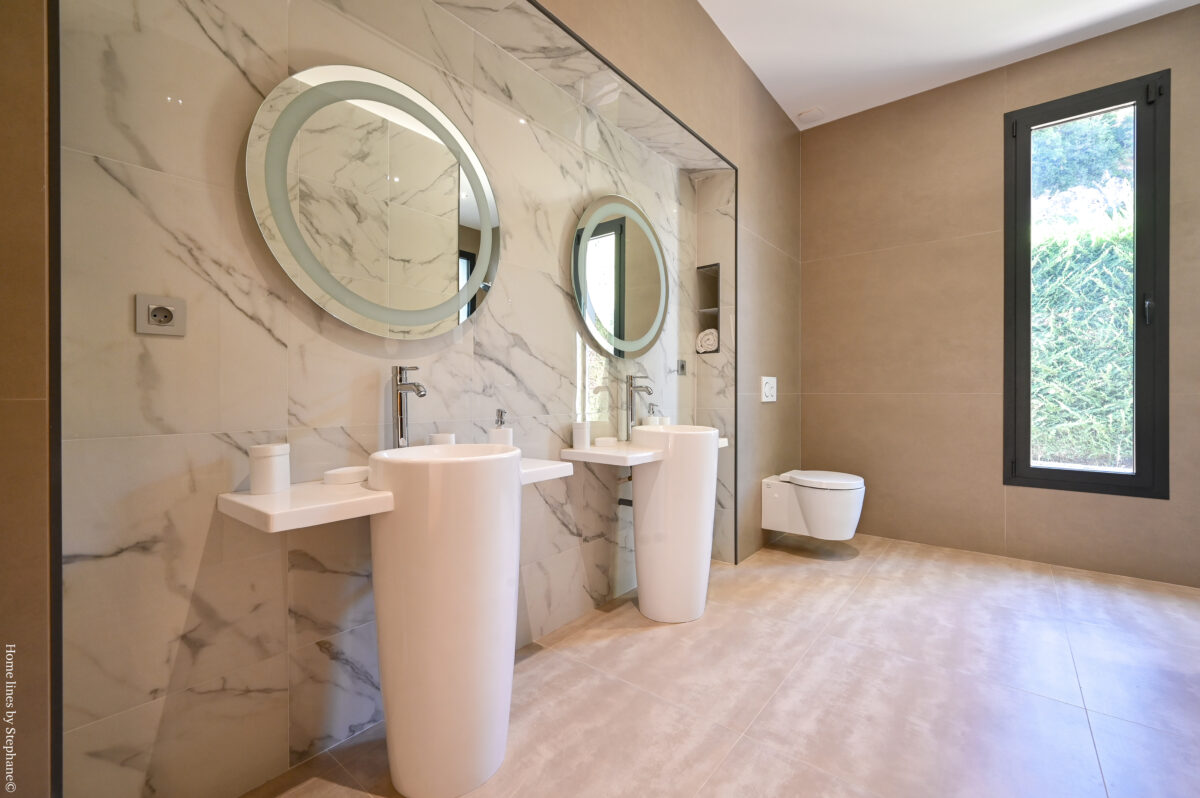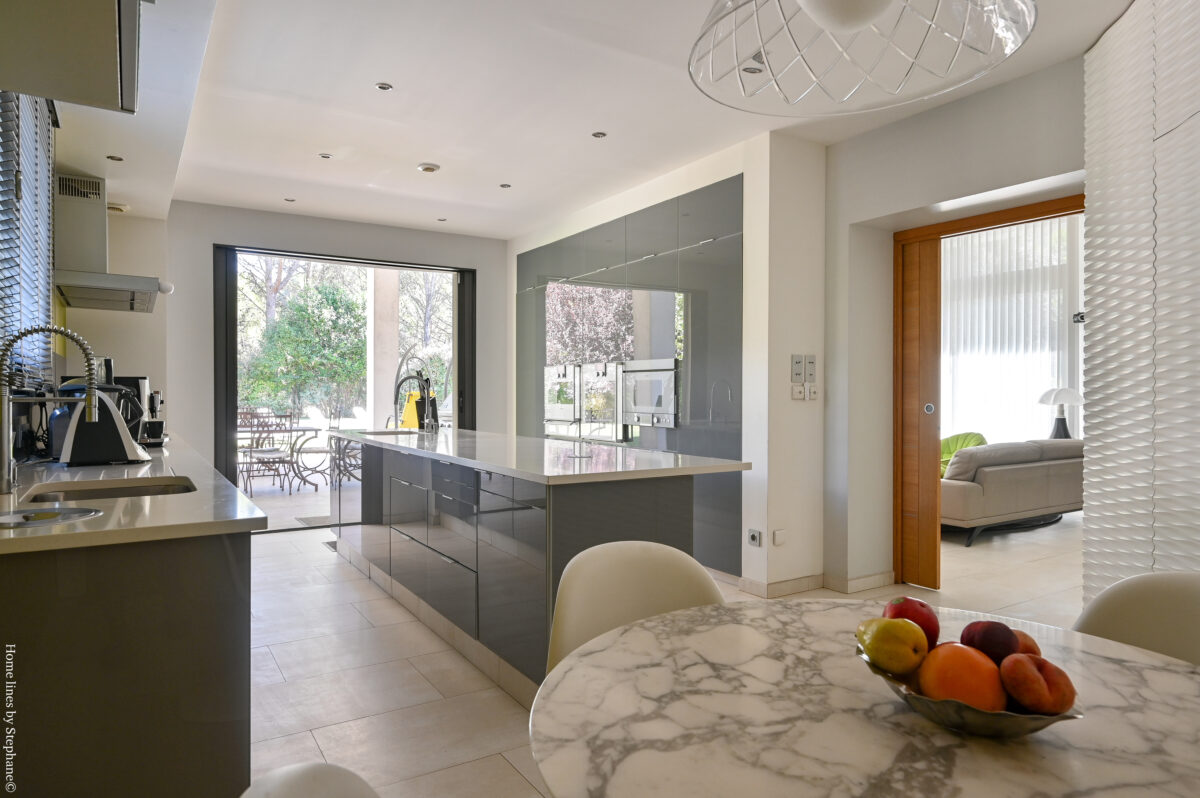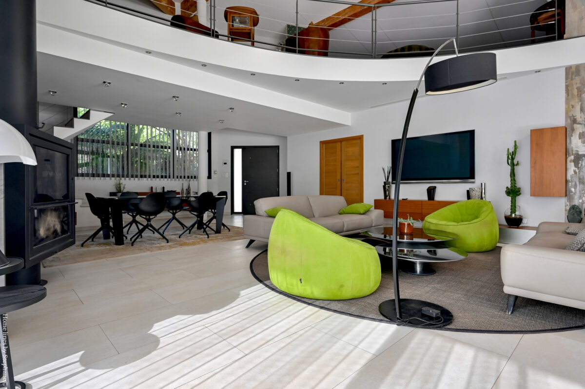 Au RDC: hall d’entrée, salon-salle à manger avec cheminée insert, cuisine design avec coin repas, 2 wc, sdb sedign (douche à l italienne, baignoire, 2 vasques..), 2 chambres climatisées communicantes avec sde, dressing aménagé, une suite parentale avec dressing et sde avec wc. A l’étage: salon-bureau en mezzanine, une chambre mansardée. Au sous-sol: garage deux voitures, salle de gym et une pièce à usage de rangement. Prestations de qualité! Honoraires AG TTC inclus