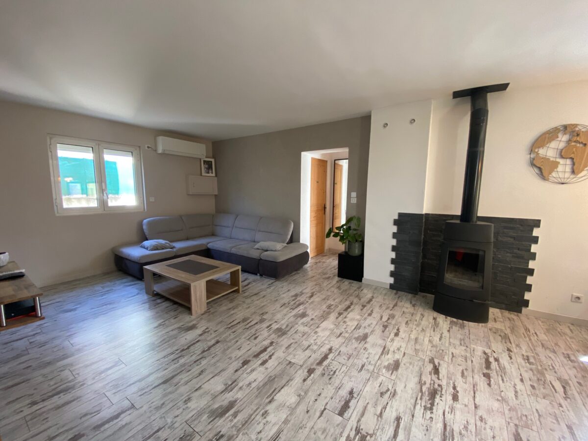 En RDC de villa, sur les hauteurs du village, petite copropriété de 2 lots, Beau Type 4 de 94m² hab avec terrasse et jardinet clos avec Exposition plein sud : salon 39m² avec climatisation et poele à bois, cuis us équipée, 3 chambres dont une avec sde, sdb, wc, cellier. Honoraires AG TTC inclus charge vendeur. Rare à la vente!