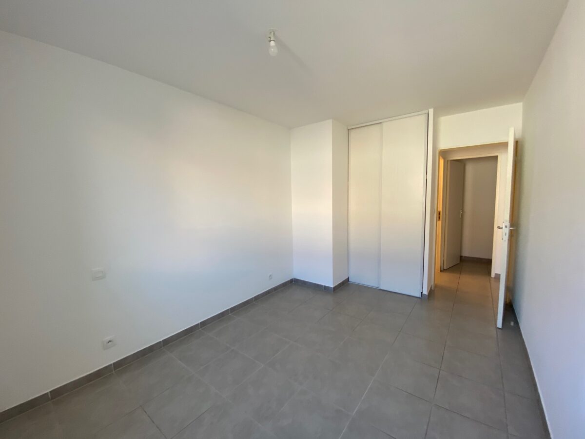 Hall d’entrée (placard), dégagement, cuisine ouverte aménagée, salon, 2 chambres (placards), sdb et wc. Honoraires AG TTC inclus.