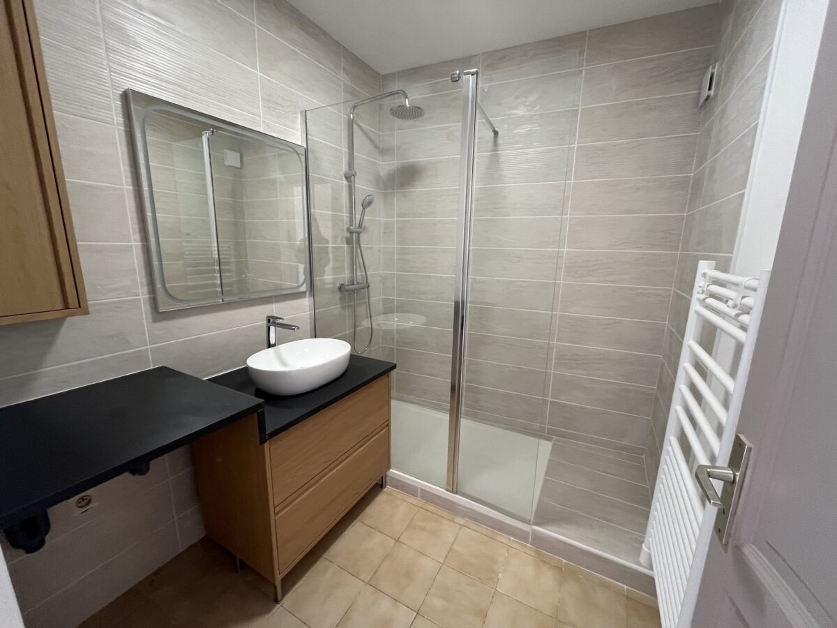 Dans résidence, au coeur du village, bel appartement de Type 2 rénové entièrement de 42.68m² hab au 2e et dernier étage: salon climatisé, cuisine us semi-équipée, loggia, une chambre avec placard, salle d’eau avec douche à l’italienne, wc et cave privative au sous-sol, parking sous la résidence.
