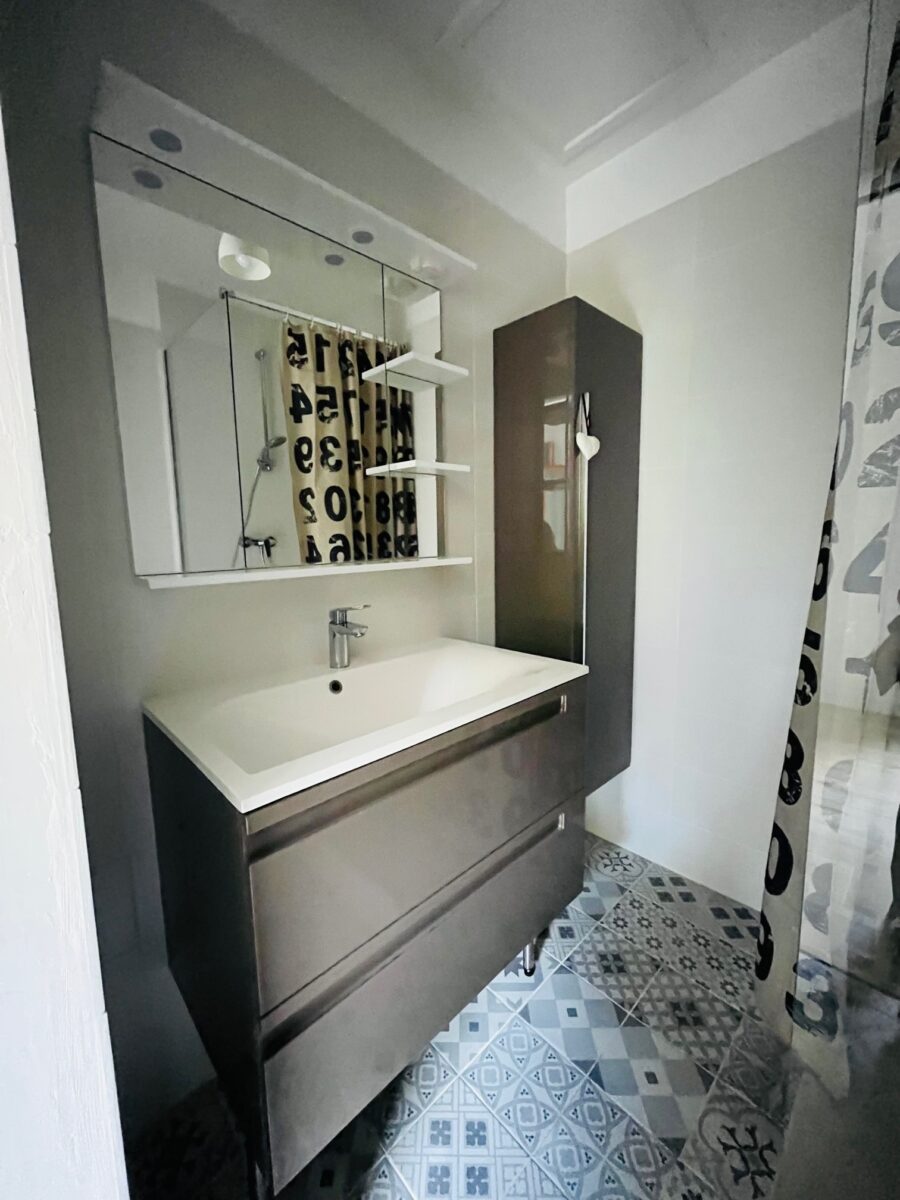 Sur place du village avec parking devant, Jolie maison de village en duplex de Type 2 de 55m² hab composée: Au RDC: cuisine équipée, salon; A l étage: dégagement, une chambre, avec sde et wc.